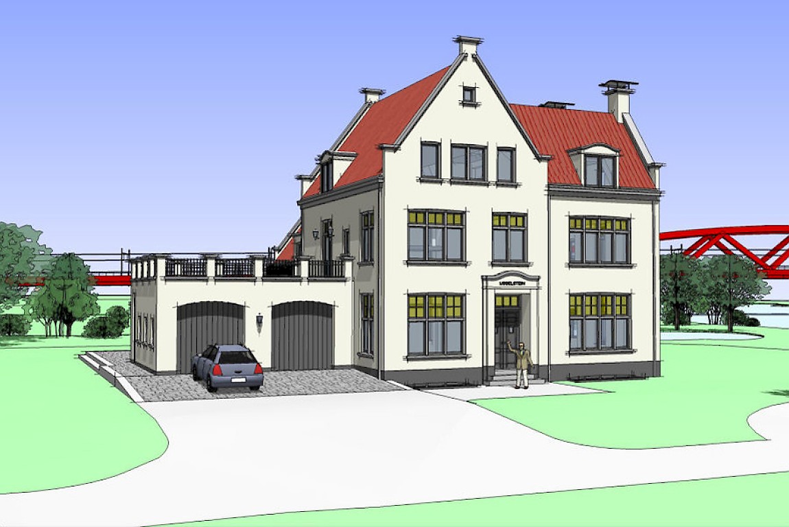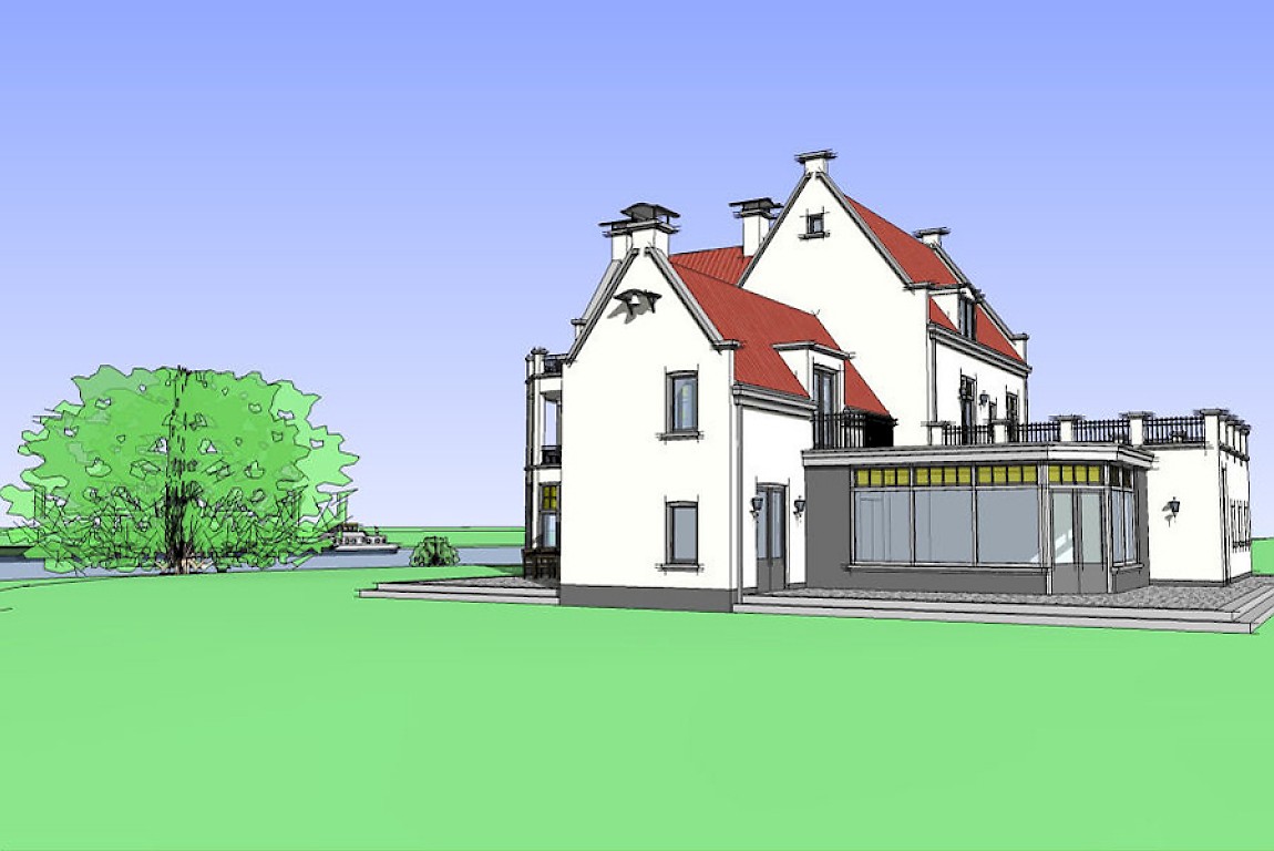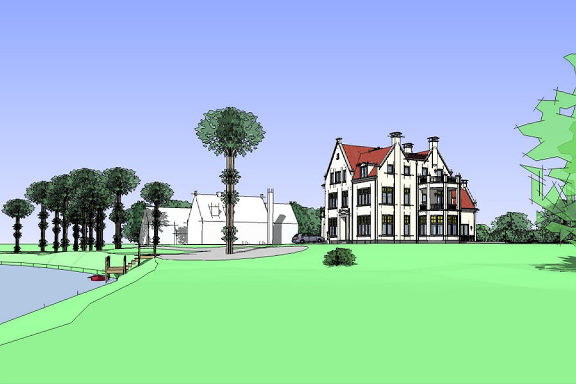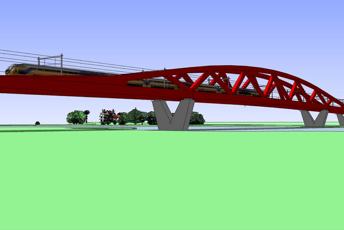 Overzicht van het terrein met nieuwe brug op de voorgrond
